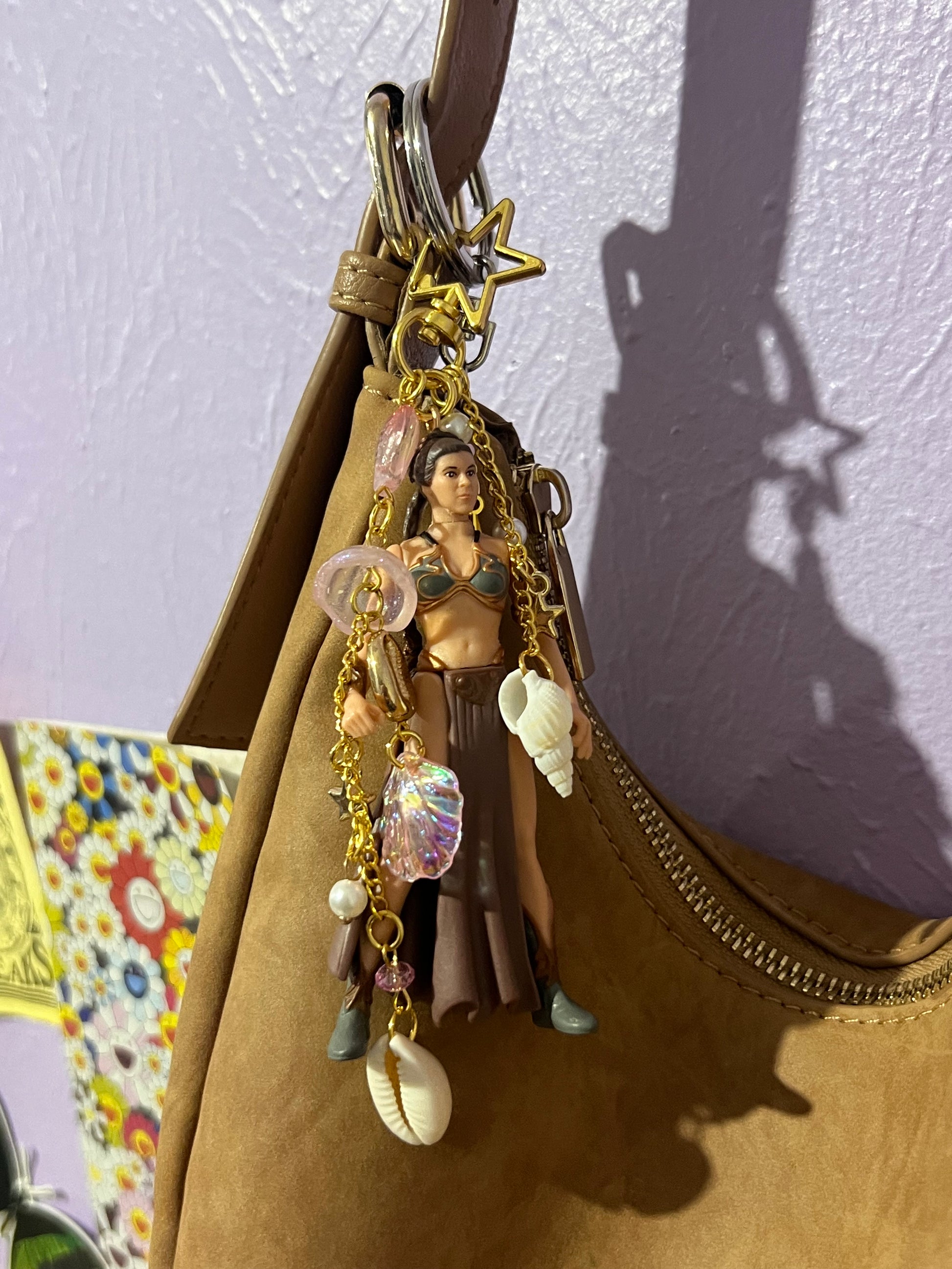 Handmade with care, this keychain features Princess Leia in her iconic Jabba’s Palace outfit from Return of the Jedi. A unique piece with custom beads and charms—perfect for fans, collectors, or anyone who loves Leia’s strength and style.